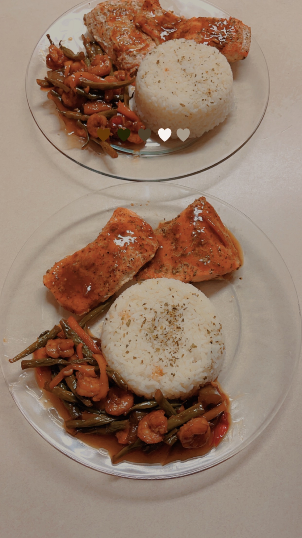 - Salmon/Rice Spinach or Broccoli (Cilantro Lime or Yellow Rice)